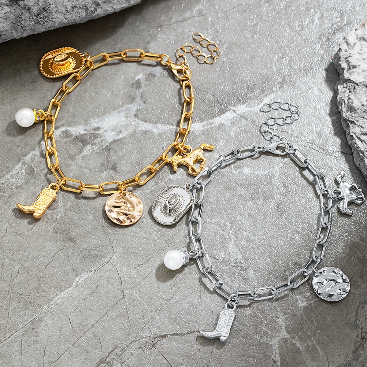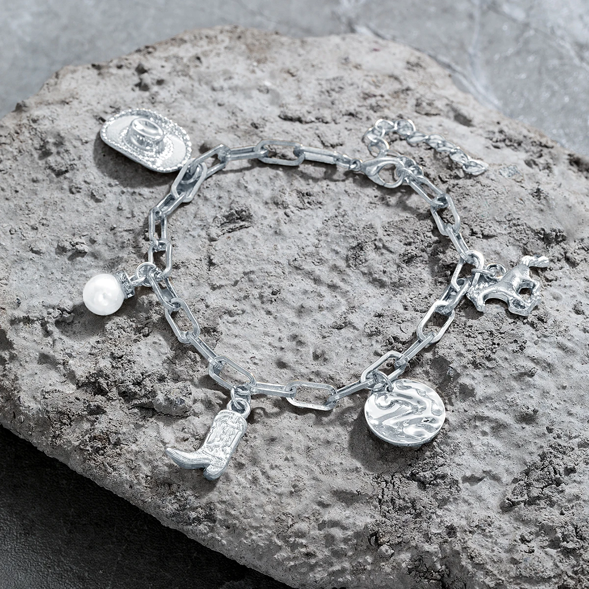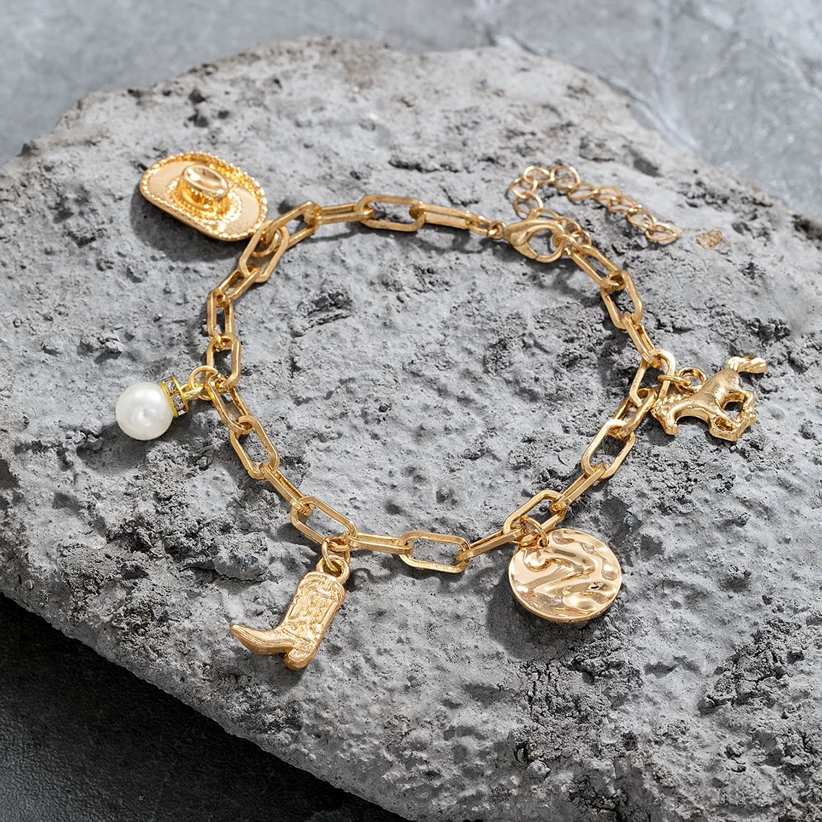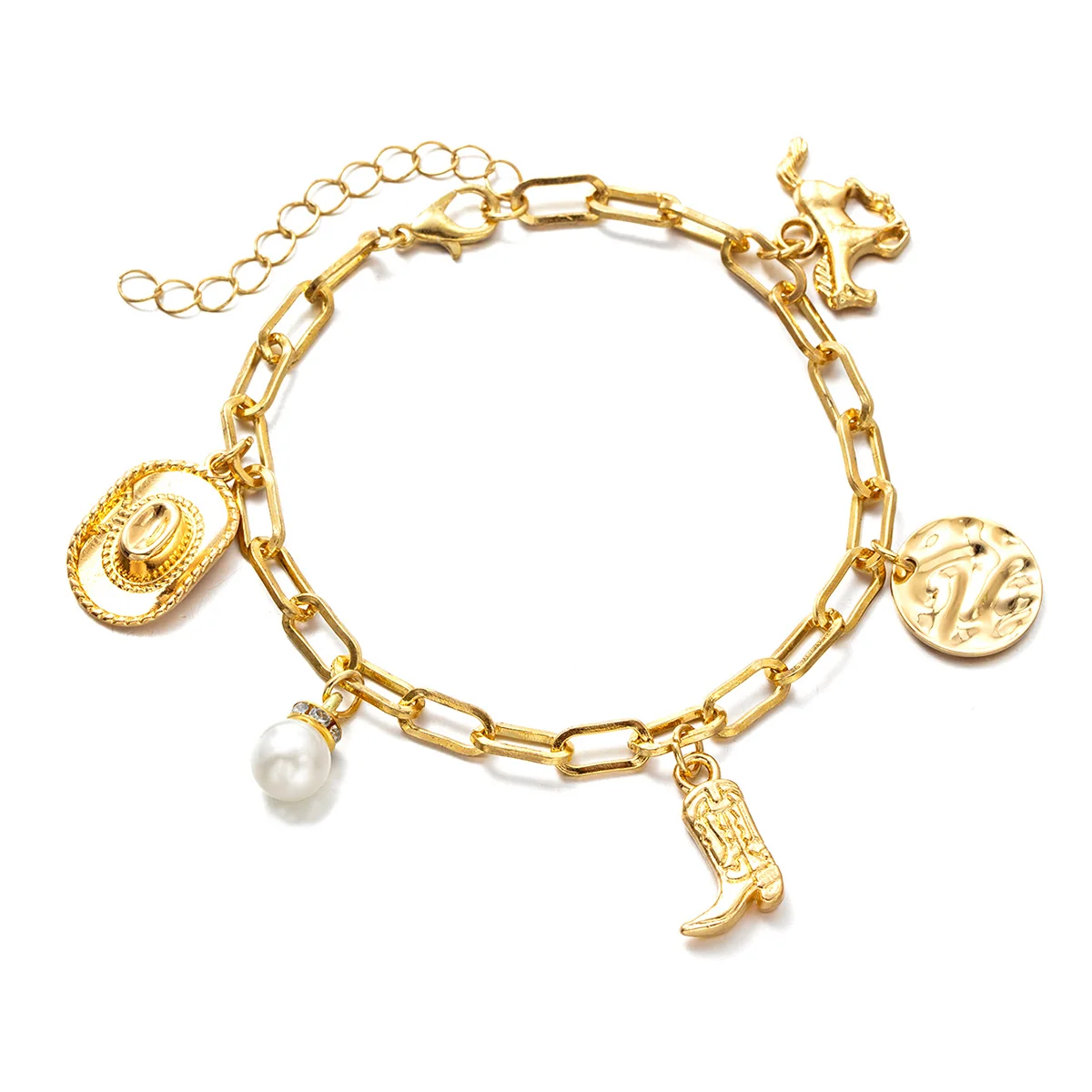 1 Western style denim hat, boot bracelet, imitation pearl, iron horse, tassel, women's retro bracelet