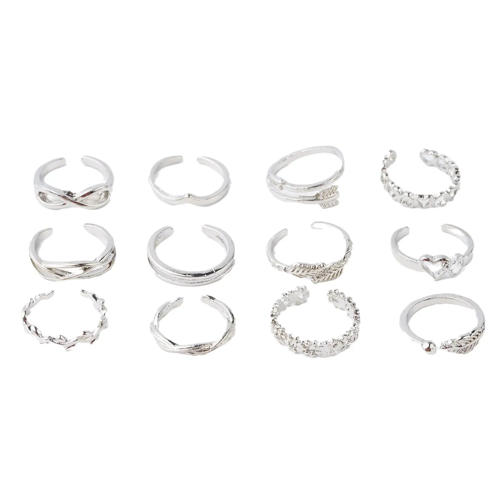 12pcs Women Knuckle Rings Arrow Knot Star Moon Foot Ring Set
